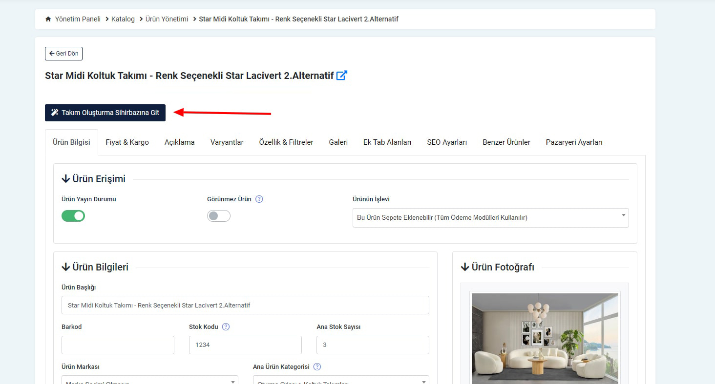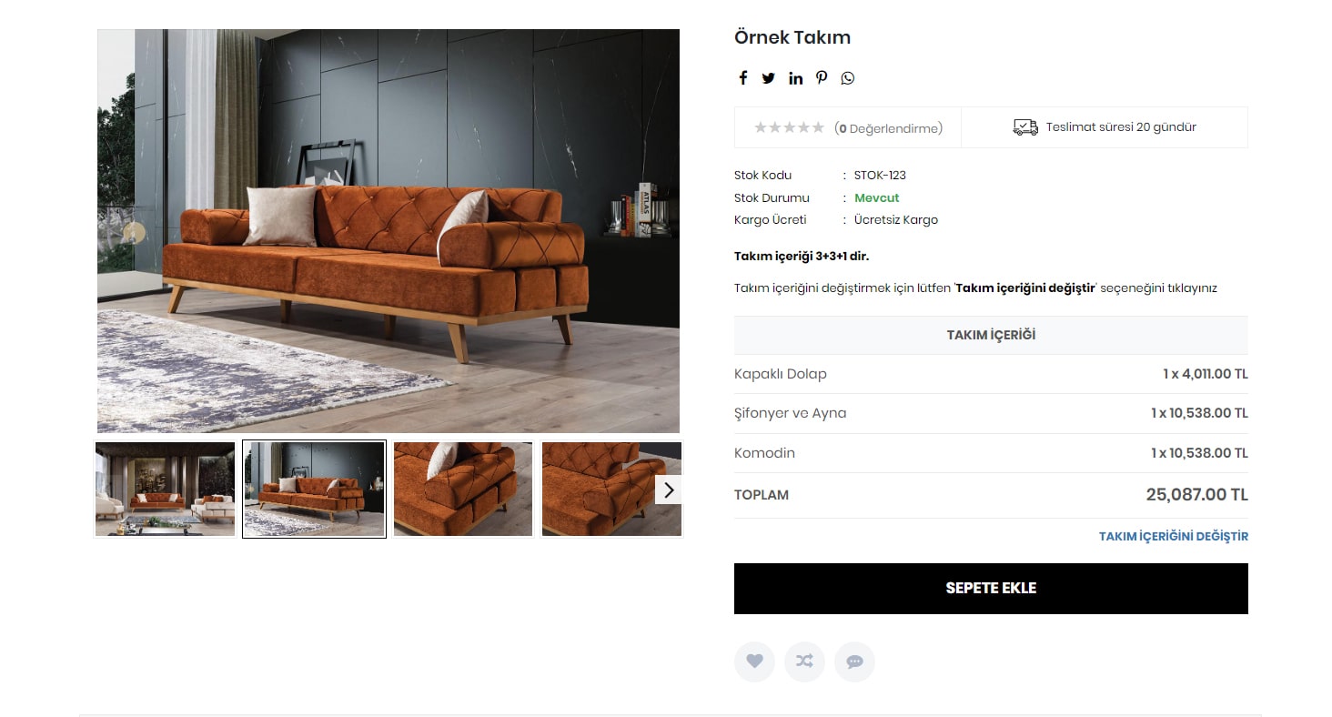 Mobilya takımınızı oluşturun ve tek bir üründe birden fazla seçenek sunarak satışlarınızı artırın